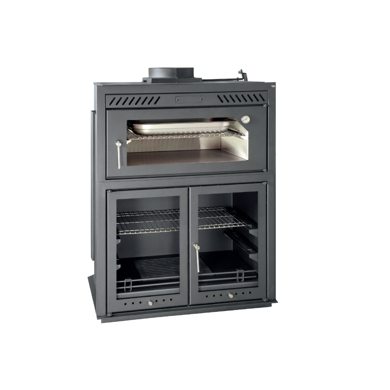 Grill mit Ferlux PRATIC 80 Einbaubackofen von 80cm mit Türen, aus 4mm Kohlenstoffstahl, Edelstahlgrill.