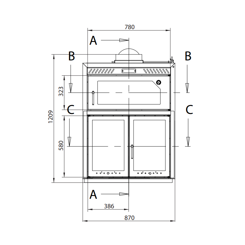 Indoor-Herdofen: 223x593x440 (Höhe, Länge, Tiefe)