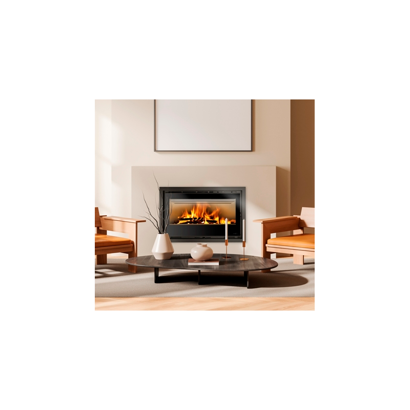 Der Holzkamineinsatz Ferlux Teide 12,5 kW Ferlux mit verglaster Fassade Passt perfekt in jedes Interieur und schafft eine warme und komfortable Atmosphäre bis zu 350m3.