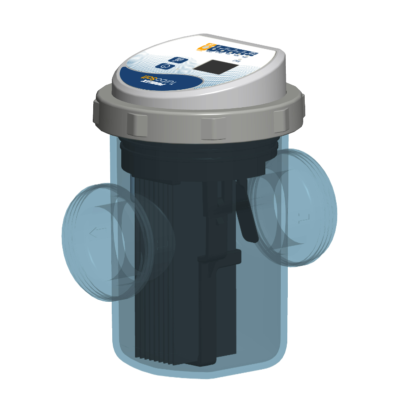 Erhältlich für Pools von 10 bis 80 m3wird der Turbo Salt mit 50 mm (1' 1/2) Verschraubungen sowie Anschlüsse 32/38 mm. Dank seiner Wand- oder Bodenhalterung passt sich dieser Salzchlorinator an alle Arten von Filtration an und seine ultrakompakte Größe ermöglicht die Installation in den engsten technischen Räumen.