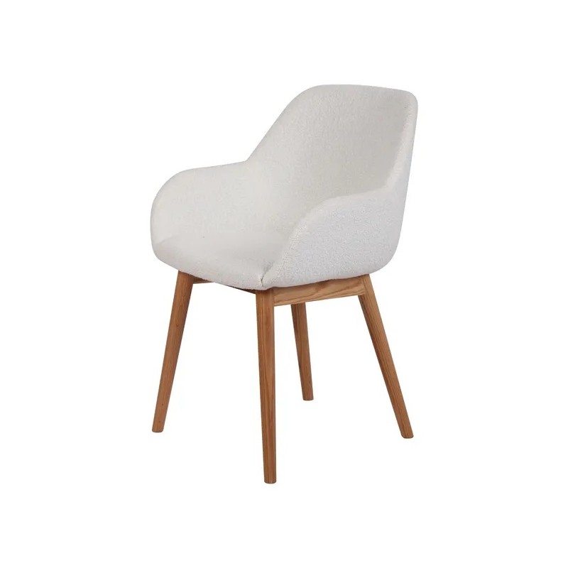 Wir entscheiden uns für diesen Tee-Esszimmerstuhl mit Wolleffekt lockig White VeryForma, sein Sitz und sein Gestell aus massiver Eiche bieten Komfort für Ihr Interieur.