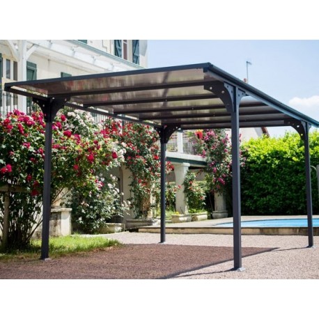 Carport Flat Roof 14.70m2 in aluminum and polycarbonate Habrita