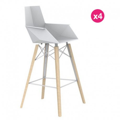 Set of 4 Vondom Faz Wood1 white bar stools with bleached oak feet and armrests
