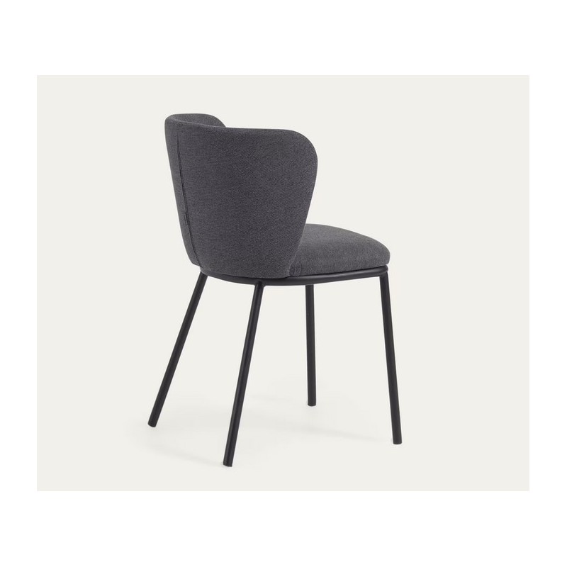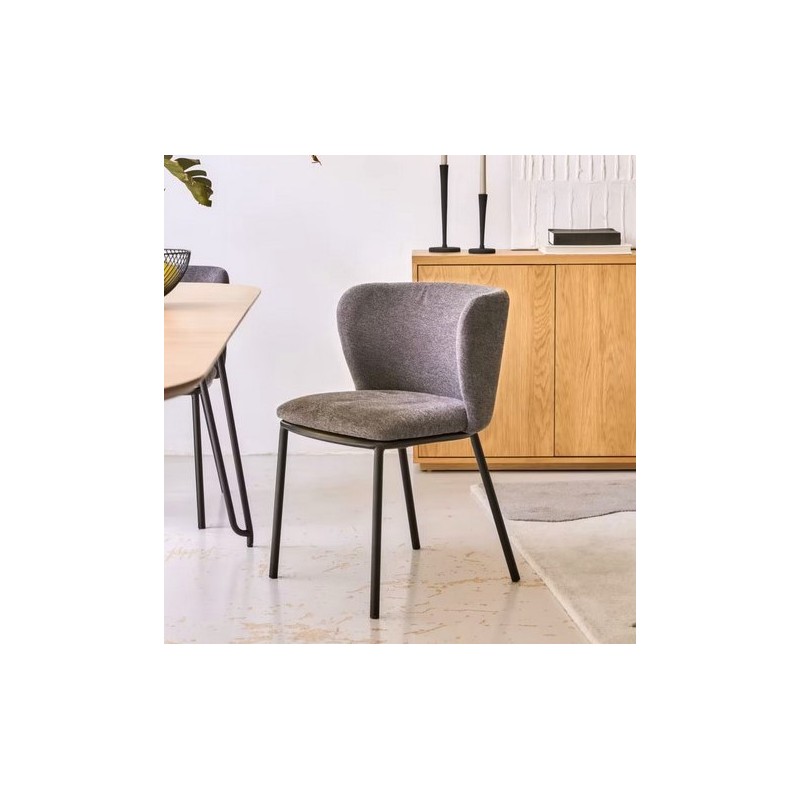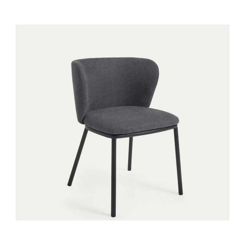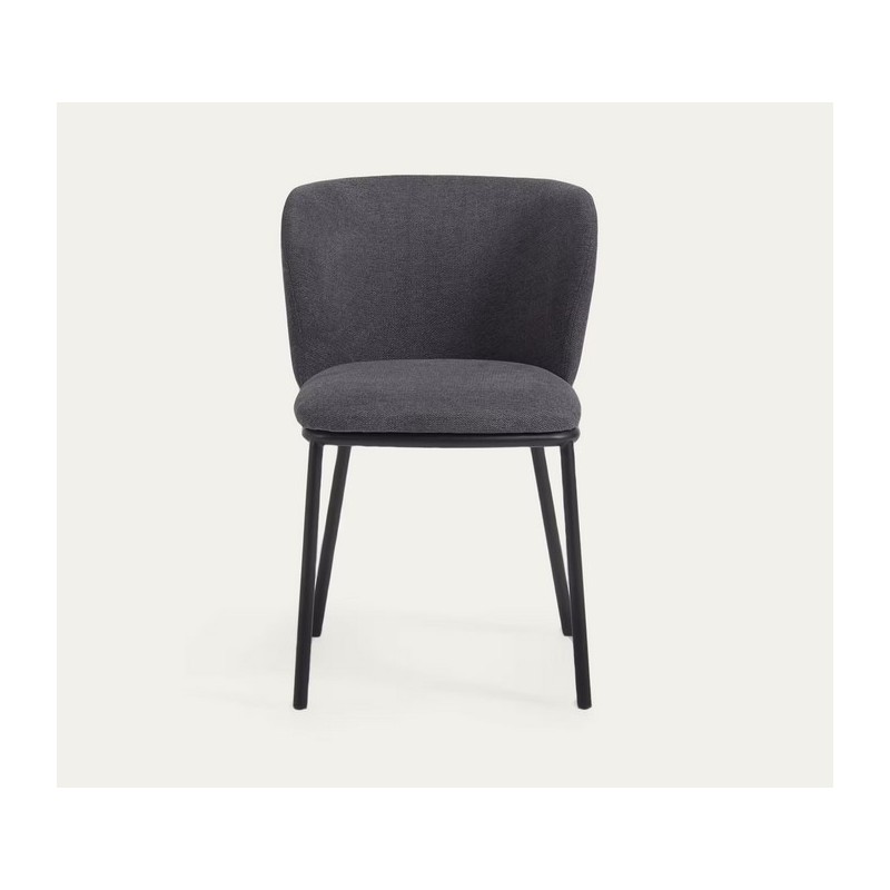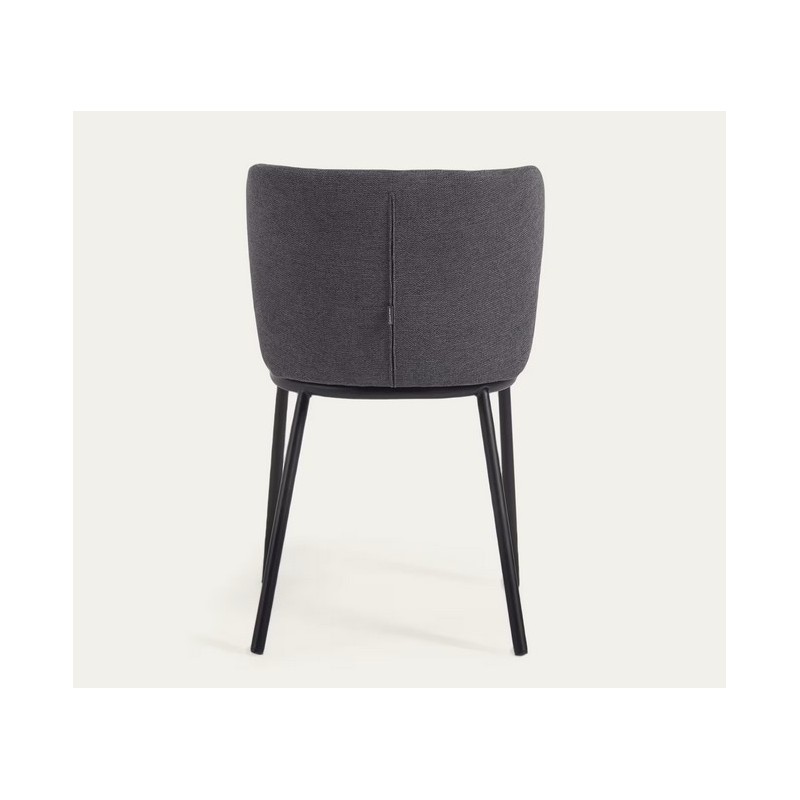The Elia chairs with seat in dark grey fabrics and steel legs black. With its comfortable and contemporary design, the Elia chair is suitable for the dining table.
