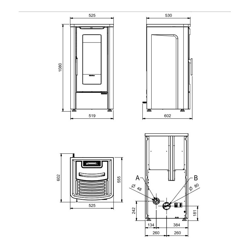Narrow ventilated pellet stove...