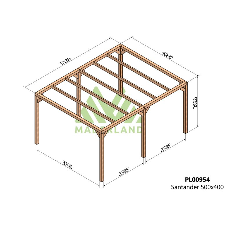 Freestanding pergola in raw wood Santaner 500x400cm 20m2