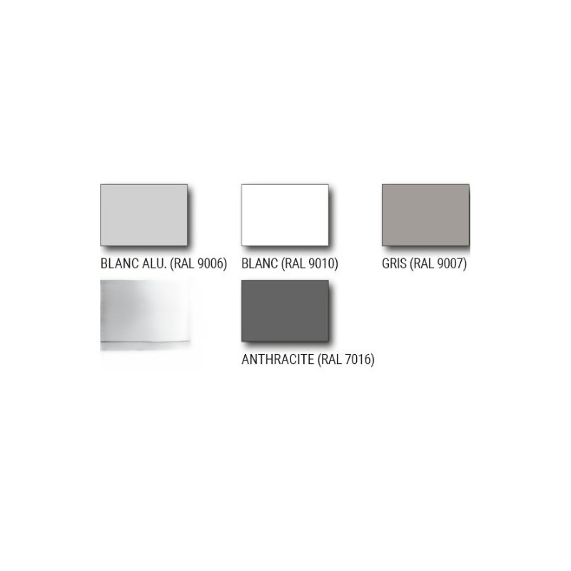 Textured Aluminium White (RAL 9006), Textured White (RAL 9010), Textured Anthracite Grey (RAL 7016), Textured Aluminium Grey (RAL 9007).