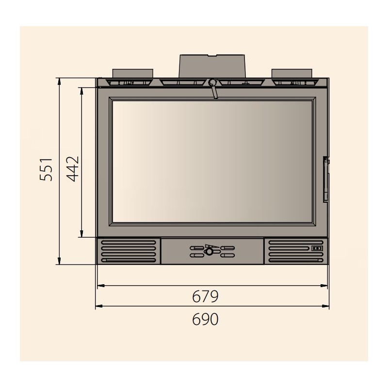 To control combustion, duration and heat input, the Insert has a regulator that acts on the air flow and in addition a second regulator that modifies the secondary air flow, with the clean glass system.