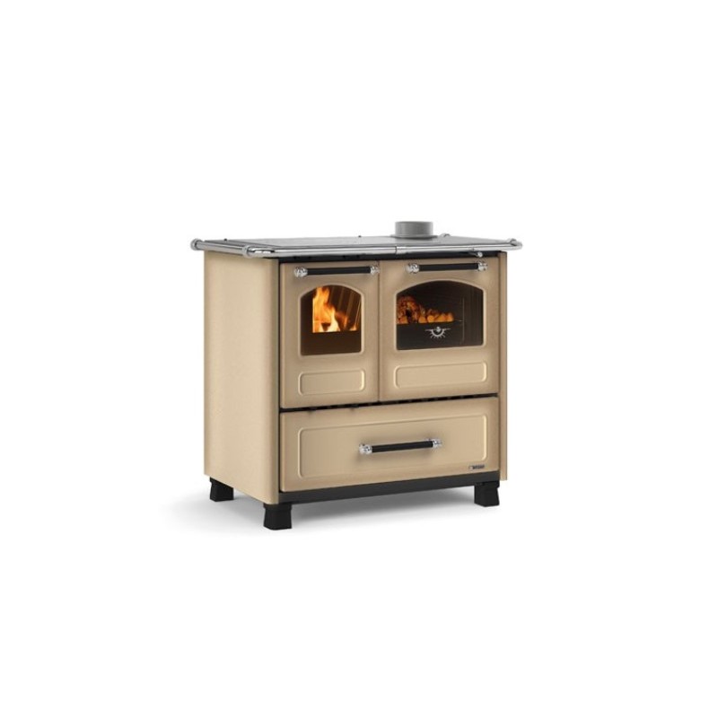 La estufa de leña Sovrana Easy Evo con horno de 41 litros de la marca La Nordica está fabricada en Cappuccino de hierro fundido esmaltado.