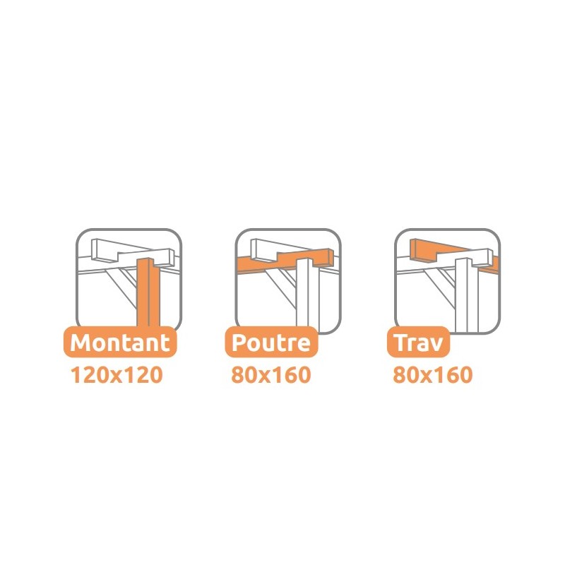 La pérgola Marsella de madera laminada en bruto es autoportante para disfrutar de una extensión al jardín y a la terraza, permitiéndole modular la luz y el sol con una cubierta de su elección.