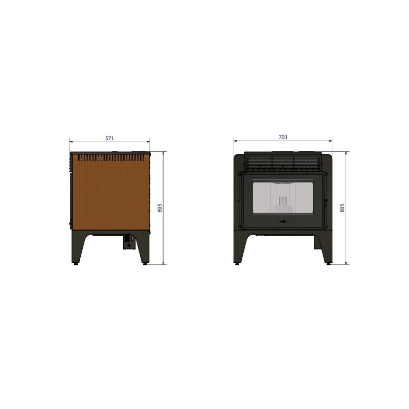 La Estufa de Pellets Ferlux 8Kw Ares Pellet con Diseño de Suelo que le permite encajar en espacios de baja altura.
