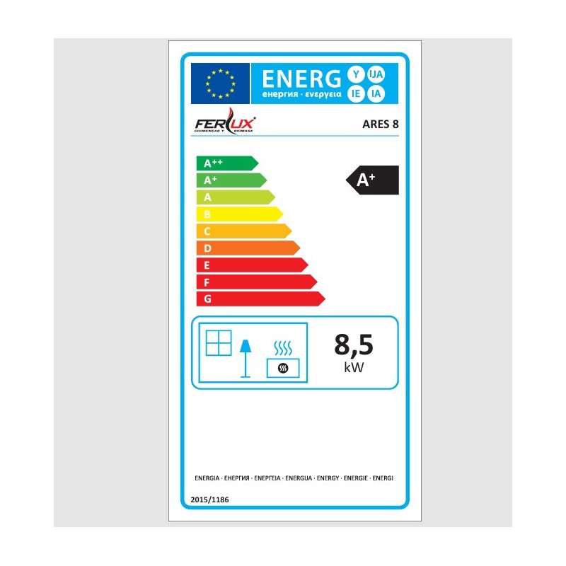 La Estufa de Pellets Ferlux 8Kw Ares Pellet con Diseño de Suelo que le permite encajar en espacios de baja altura. Volumen de calefacción de hasta 195m3. Eficiencia: 94%.