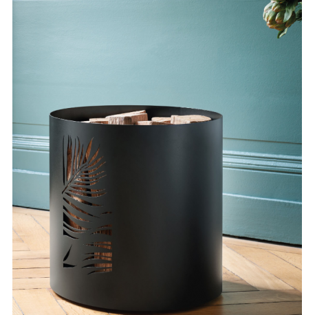 Con su motivo de hojas de palma cinceladas, el organizador de troncos de Borneo se afirma como un objeto decorativo por derecho propio cerca de la estufa.