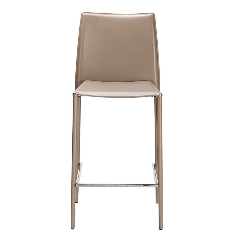 Información adicional: condicionado por 2, Monte A, asiento y respaldo en cuero reciclado, pies de metal cubierto en cuero reciclado, travesaños en acero inoxidable, altura del respaldo: 35 cm, respaldo alto ancho: 37 cm, altura de asiento: 66 cm, frente ancho del asiento: 44 cm, respaldo ancho: 35 cm, profundidad del asiento: 42 cm, travesaños de altura en pies: 23 cm
