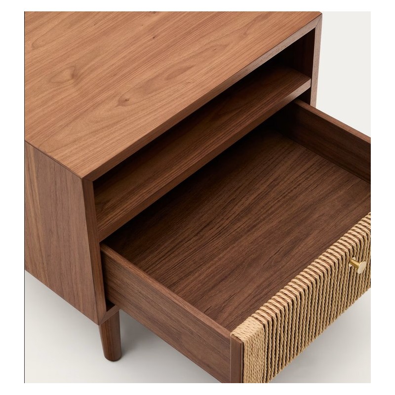 Mesita de noche y cajón de cuerda de madera de nogal 51x45 Ela VeryForma.
