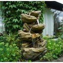 La fontaine Sedonas Ubbink majestueuse cascade imitant la forme naturelle de vieux troncs d'arbre. Les cascades d’eau se forment au niveau des vasques et sont éclairées par des LED. Complet avec pompe pour le jardin prêt à l’emploi