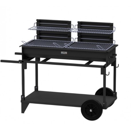 Le Barbecue Le Marquier XL a doppio fuoco, doppia griglia L49xP38 cm regolabile su 3 livelli con il suo carrello.