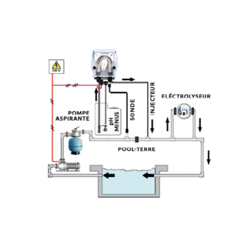 La pompa pH deve essere installato sull'impianto idraulico della piscina.