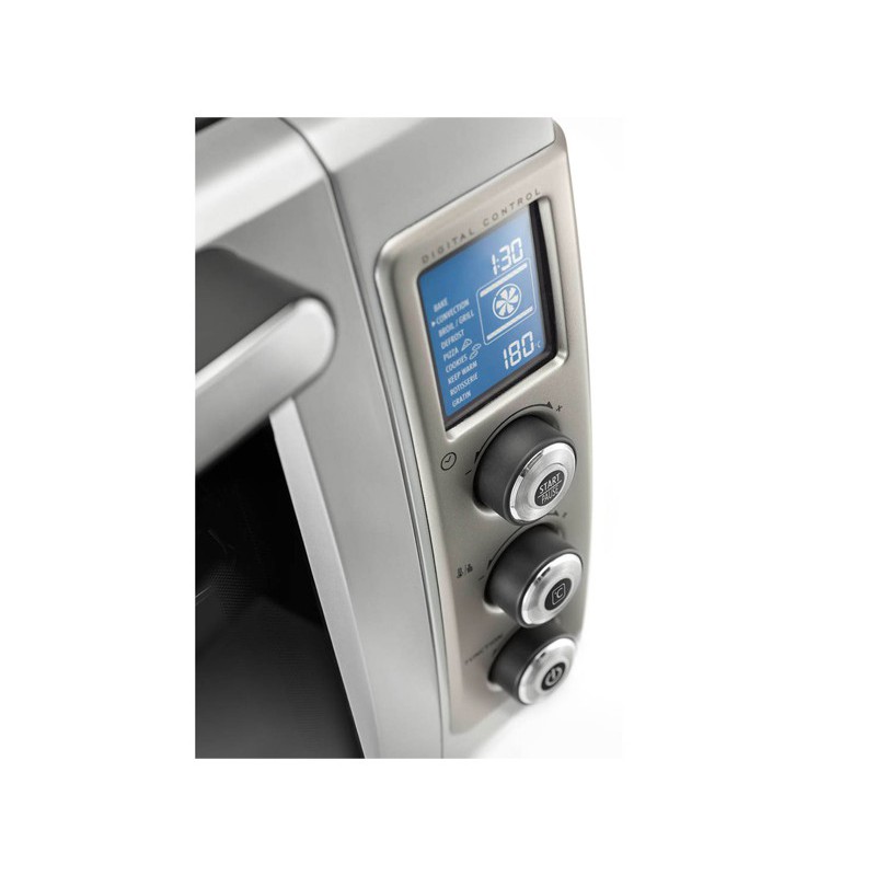 Scopri gli aspetti pratici di questo forno da appoggio di 32 litri. Questo modello funziona con un calore pulsata che permette in pelle su 2 livelli. Esso è dotato di un sistema per ridurre il tempo di cottura al 15%. Per facilità d'uso, questo forno è dotato di pulsanti per maneggevolezza e un display intuitivo per selezionare ogni tipo di cibo e la modalità di cottura. Ha anche una luce interiore e un controllo digitale.