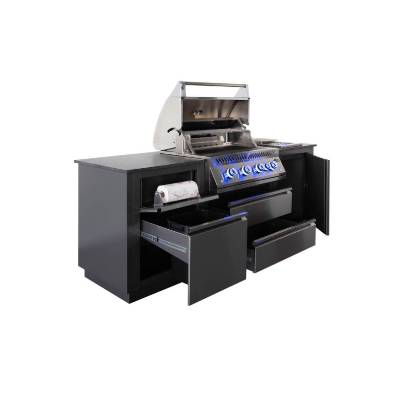 Goditi la cucina all'aperto perfetta con un sacco di pratico spazio di archiviazione, un porta asciugamani di carta e un cassetto per i rifiuti.