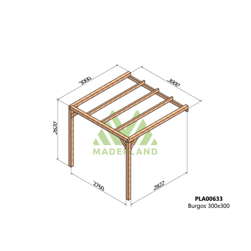 La pergola Burgos in legno grezzo è Disponibile in diverse misure per adattarsi alle vostre esigenze.