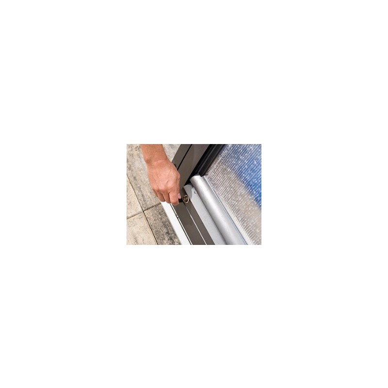 Il riparo telescopico Imperial Bottom protegge l'accesso alla piscina e l'apertura è dotata di un sistema di chiusura a chiave che può essere aperto solo con due movimenti.