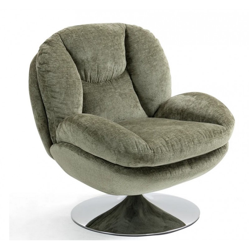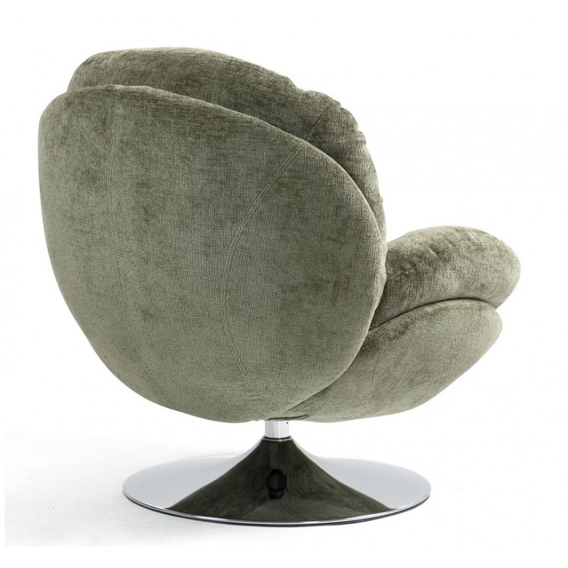 Noi optiamo per questo Poltrona girevole in velluto kaki VeryForma, la sua seduta e la base rotonda in metallo cromato offrono comfort ai tuoi interni.