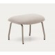 Il poggiapiedi per la poltrona Lina in tessuto ciniglia beige e piedino in acciaio nero.