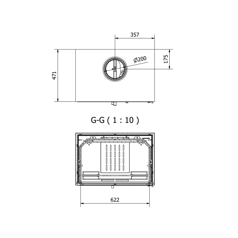 - Dotato di focolare e porta in ghisa, due ventole, un interruttore della luce e un termostato