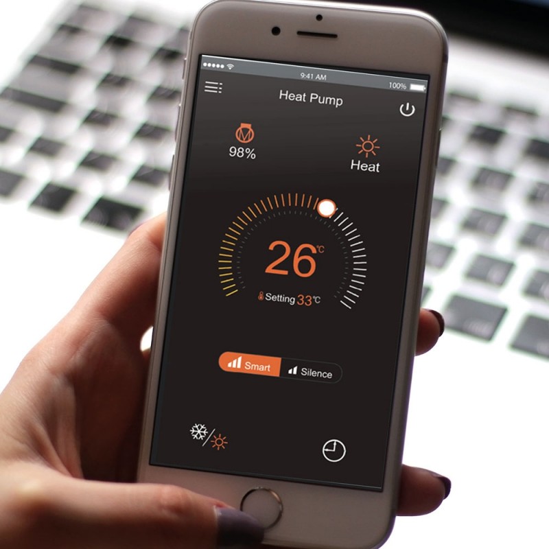 O módulo WIFI está incluído como padrão em bombas de calor BWT Inverter conectadas. Acesse o serviço de suporte em 1 clique e siga suas informações em tempo real. Onde quer que você esteja e quando quiser, mantenha facilmente o controle: Capacidade de aquecimento, ajuste de temperatura, modos quentes/frios, temporizador ...