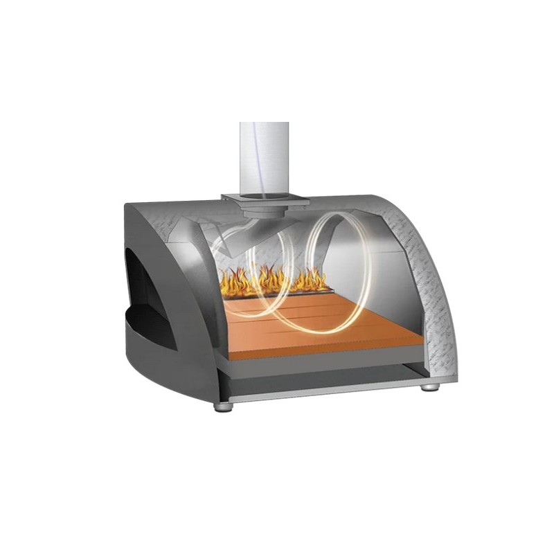 Disponível em Gás e Madeira Híbrido, este prático e versátil forno de pizza pode ser facilmente movido para qualquer lugar, graças à base equipada com suporte redondo.