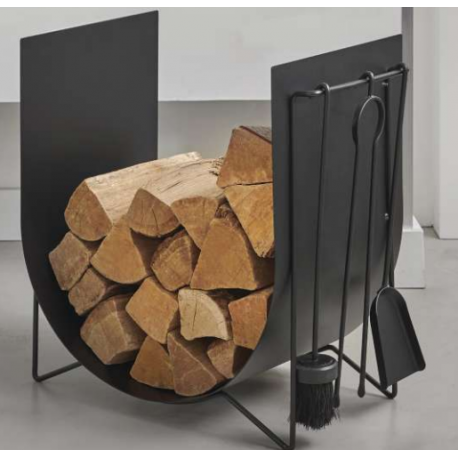 Edonis é um engenhoso rack de toras 2 em 1: oferece uma solução de economia de espaço ao ter todos os acessórios de manutenção ao seu alcance. Sua forma de berço é inspirada nas curvas invertidas dos arcos românicos e alcovas.