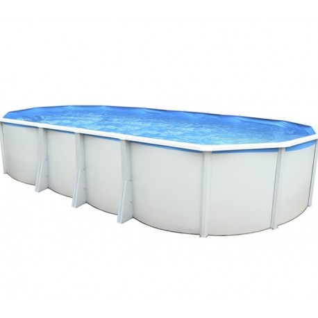 Piscina oval de 132 cm de altura sem contrafortes. A piscina se encaixa perfeitamente no seu jardim. Estrutura metálica com perfis metálicos e escumadeira completa.