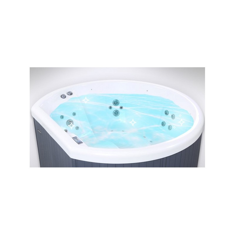 O Netspa Halfmoon Spa Feito de acrílico é muito fácil de usar. O painel de controle retroiluminado permite acionar os jatos ou desligá-los, mas também a iluminação com uma simples pressão.